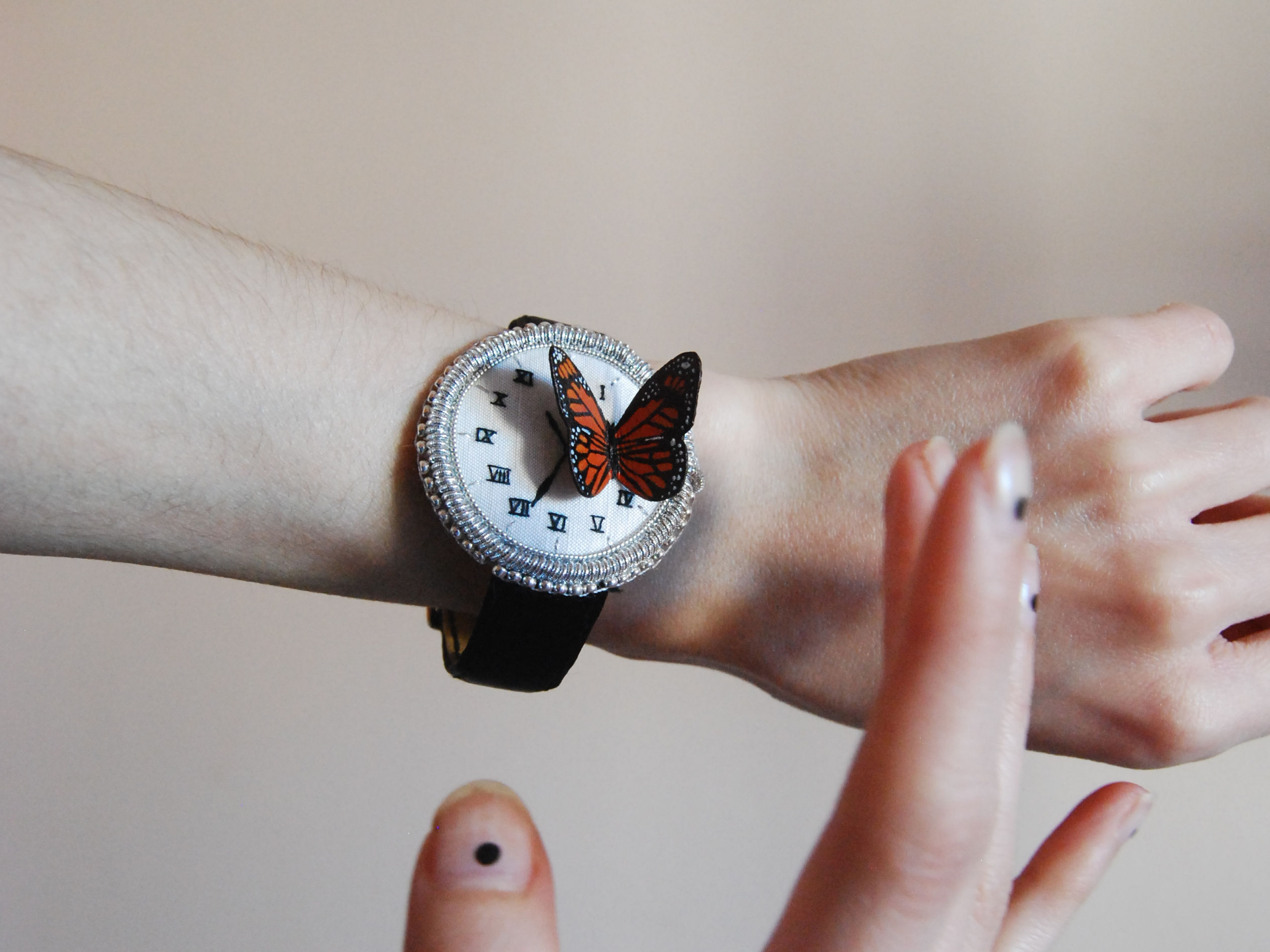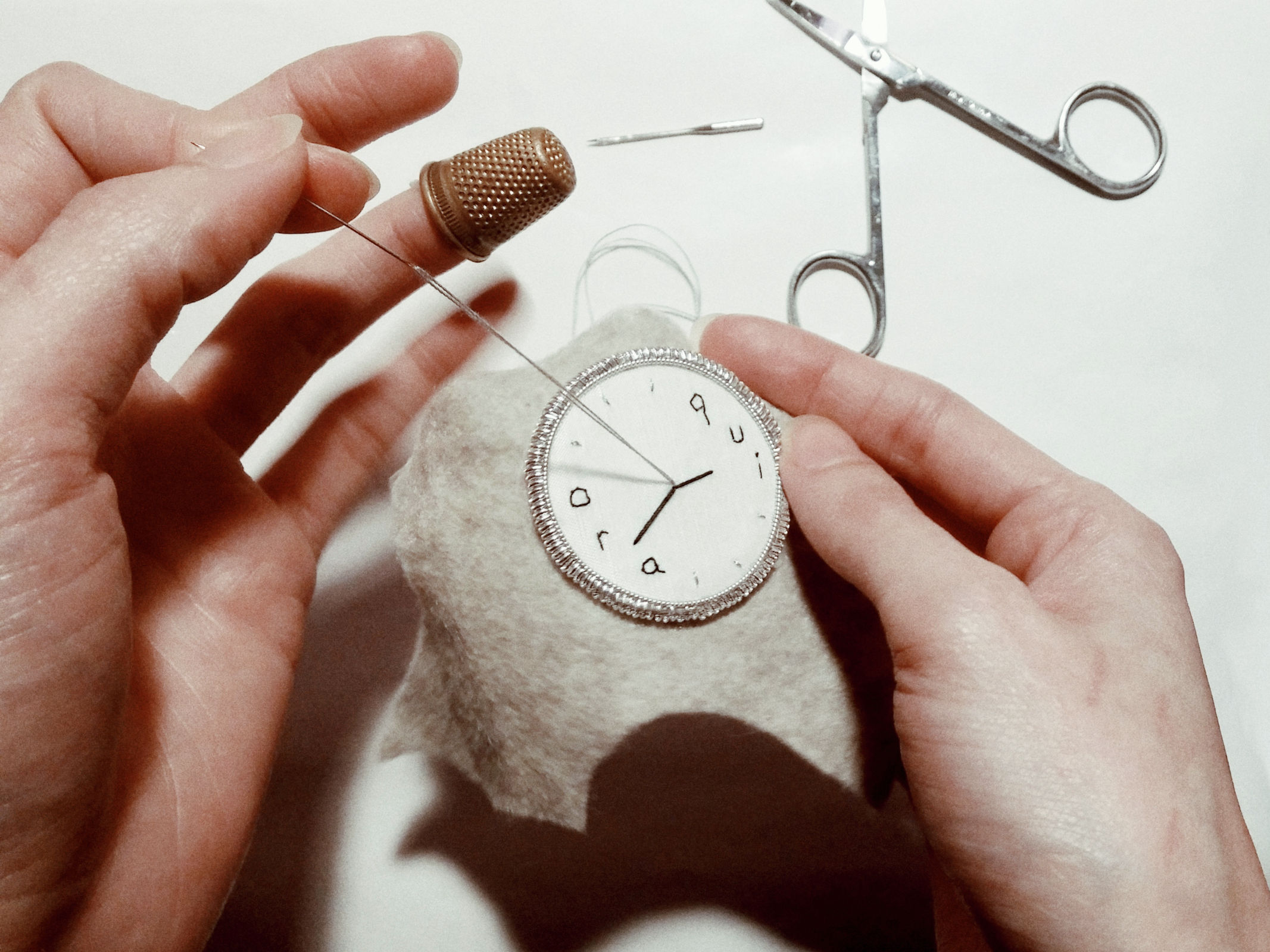 Born as little textile artworks to wear, the first Temposcopi are made of upcycled textiles, cotton threads and silver or gold findings, entirely handembroidered to recreate the appearence of a common wrist watch in which the usual dial is replaced by symbols of the multiple meanings of Time.